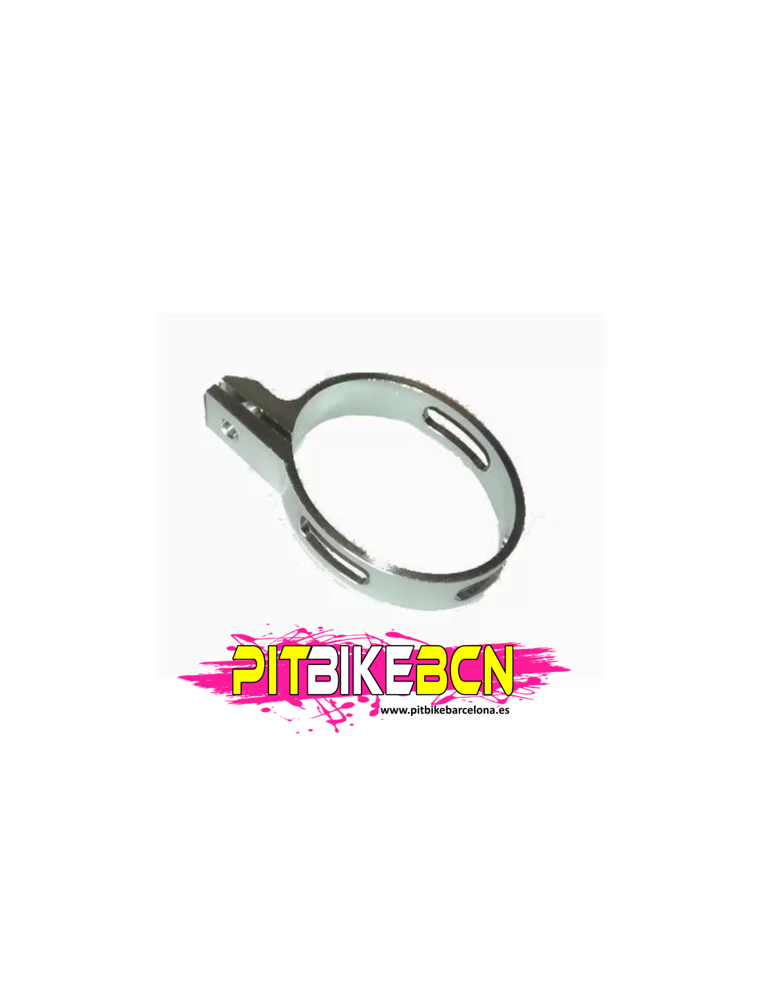 Abrazadera de sujeción de escape para PitBike. Brida fabricada en aluminio resistente, diseñada para escapes con silencioso ovalado. Garantiza fijación segura y estabilidad del escape durante la conducción.