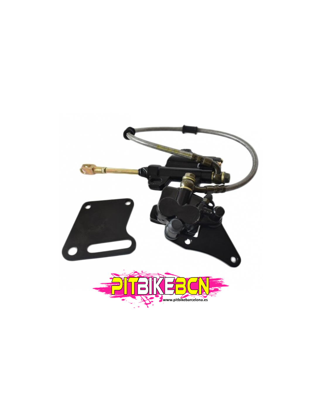 Freno trasero A de doble pistón pequeño, especialmente diseñado para pit bikes como Malcor, Orion AGB27, AGB29, AGB34, IMR y Rebel Master. Este modelo es de menor tamaño que el freno trasero B, ideal para configuraciones más compactas y ligeras.