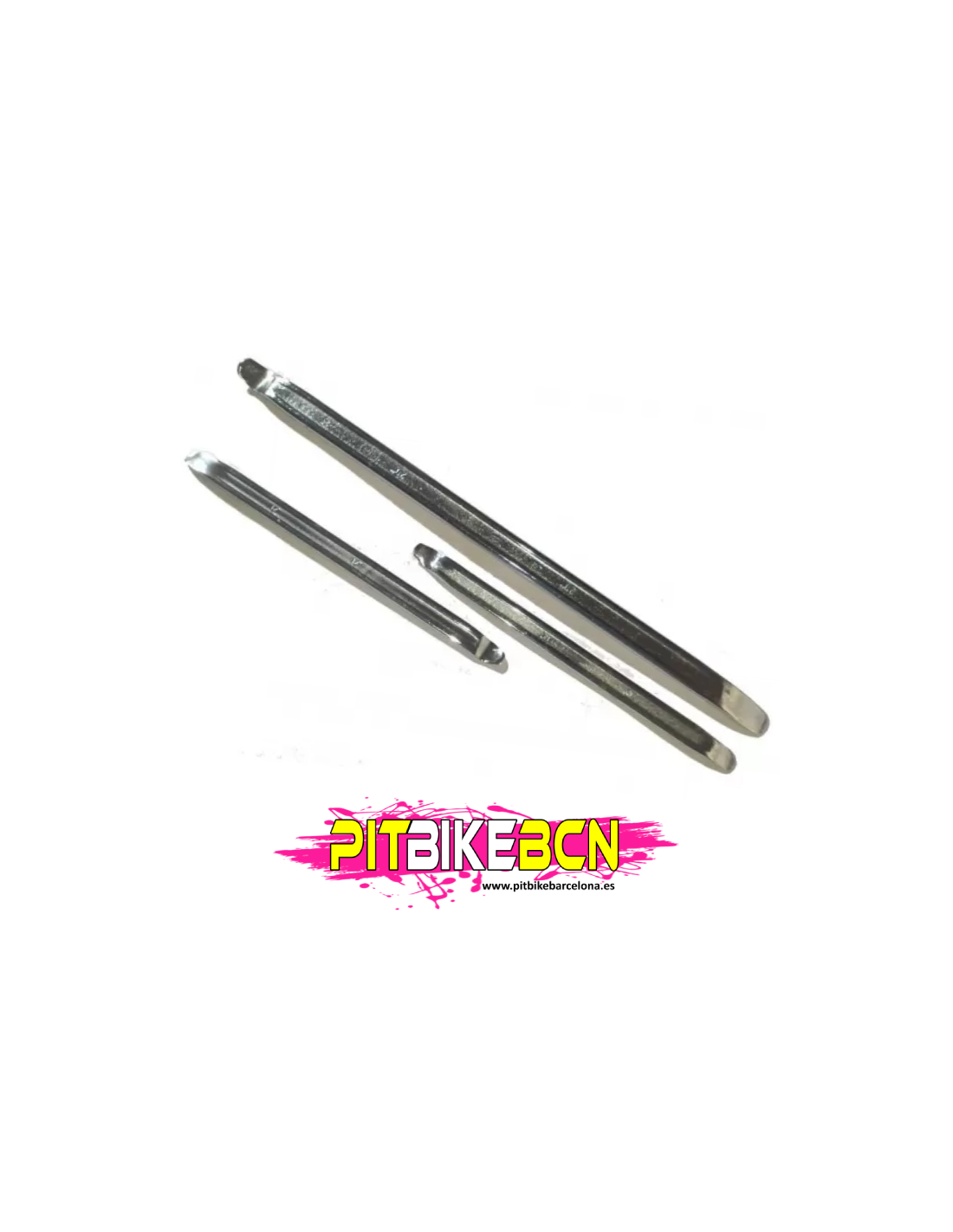 Desmontadores de rueda para pit bikes, motos y quads. Kit de tres piezas: dos cortos para llantas de 12" y uno largo válido para llantas de hasta 20".