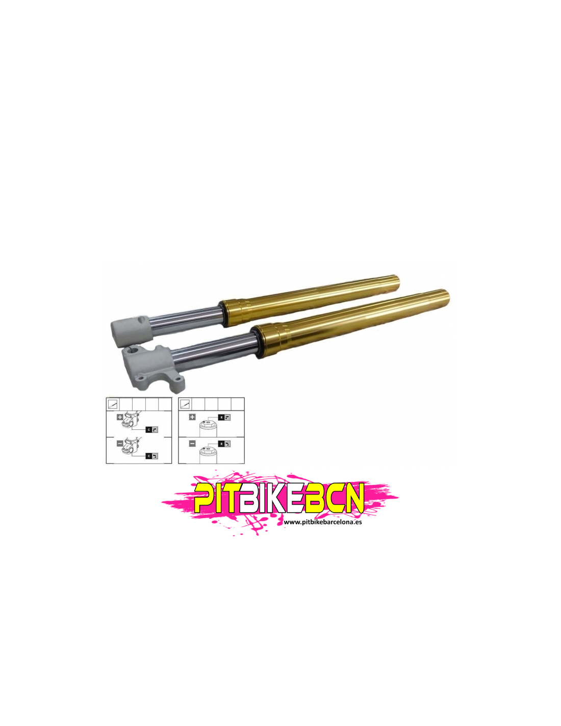 - Botella de 45 mm y 48 mm para anclaje convencional en tijas de pit bike.