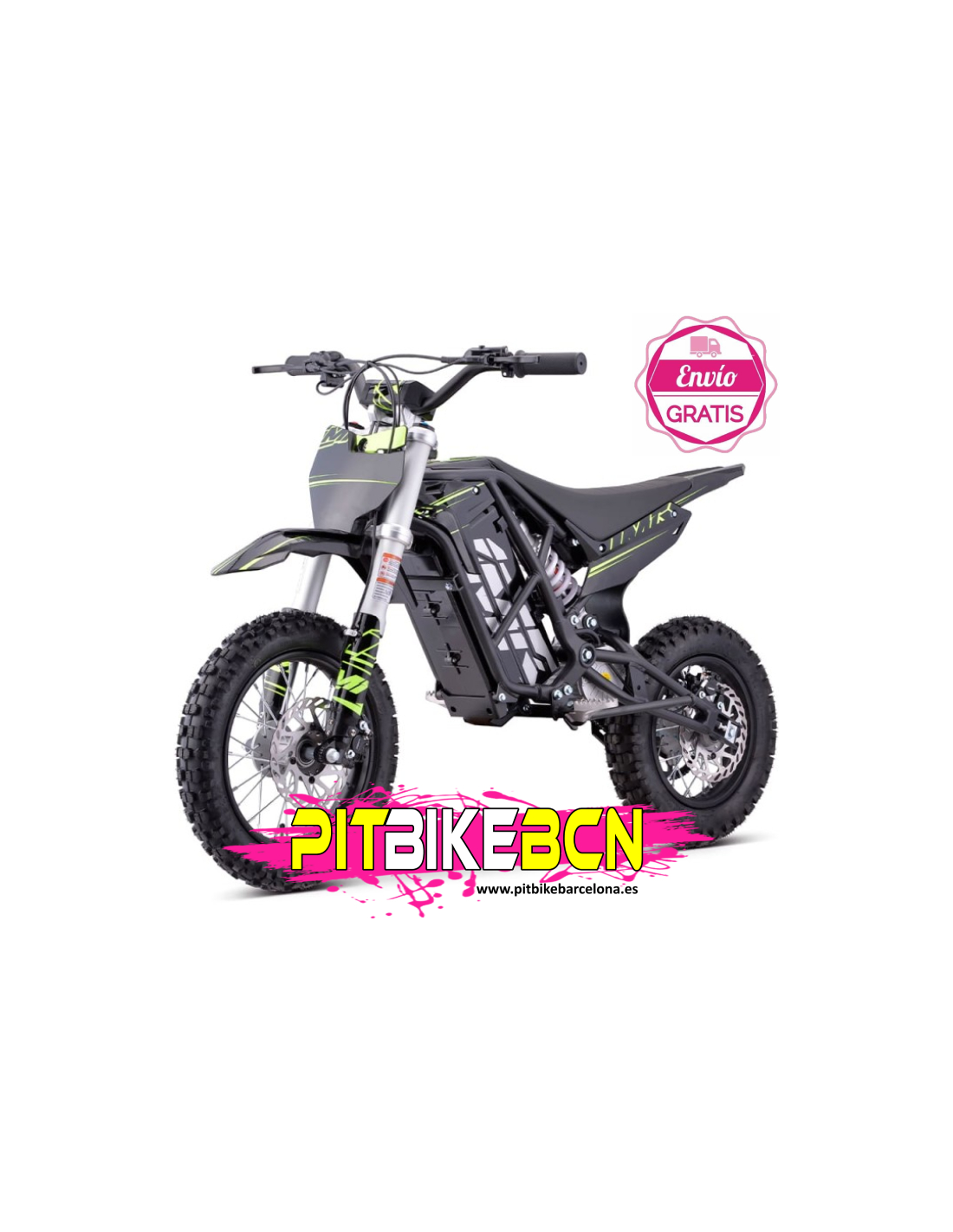 Nueva Minicross Eléctrica E-SX modelo IMR (2025) con motor de 2000W de potencia y bateria de litio de 60V. Autonomía de 2 horas y velocidad máxima de 53km/h. Suspensión delantera de horquilla invertida de 550mm y amortiguador trasero de 270mm. Freno delantero y trasero de accionamiento hidráulico y llantas de 14 y 12 pulgadas. Altura del asiento al suelo de 660mm