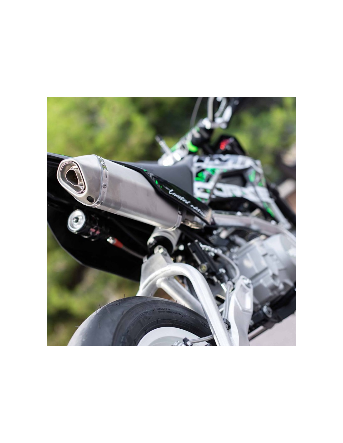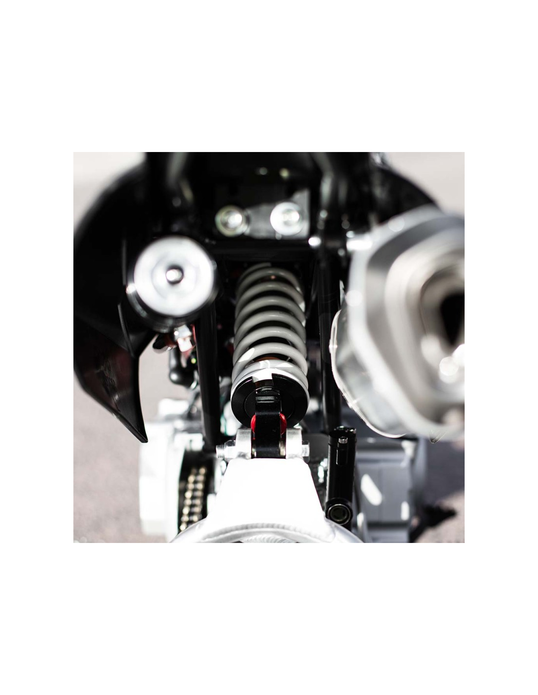 Equipada con freno delantero de pinza axial de 2 pistones y disco de 190 mm, además de freno trasero de 180 mm. Monta llantas IMR Racing de 12" y ofrece una altura de asiento de 78 cm.