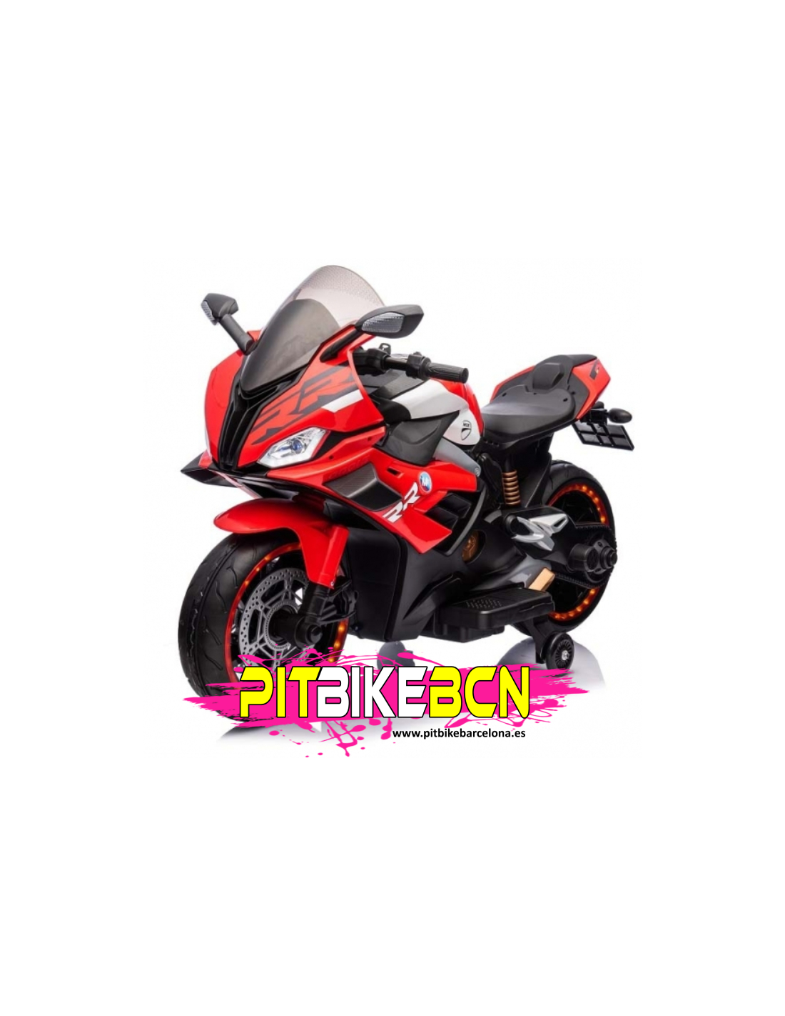 Motocicleta eléctrica infantil RR para niños desde 36 meses, equipada con dos motores de 25W cada uno y batería de 12V. Su funcionamiento es sencillo gracias al pedal de accionamiento, ideal para los más pequeños.