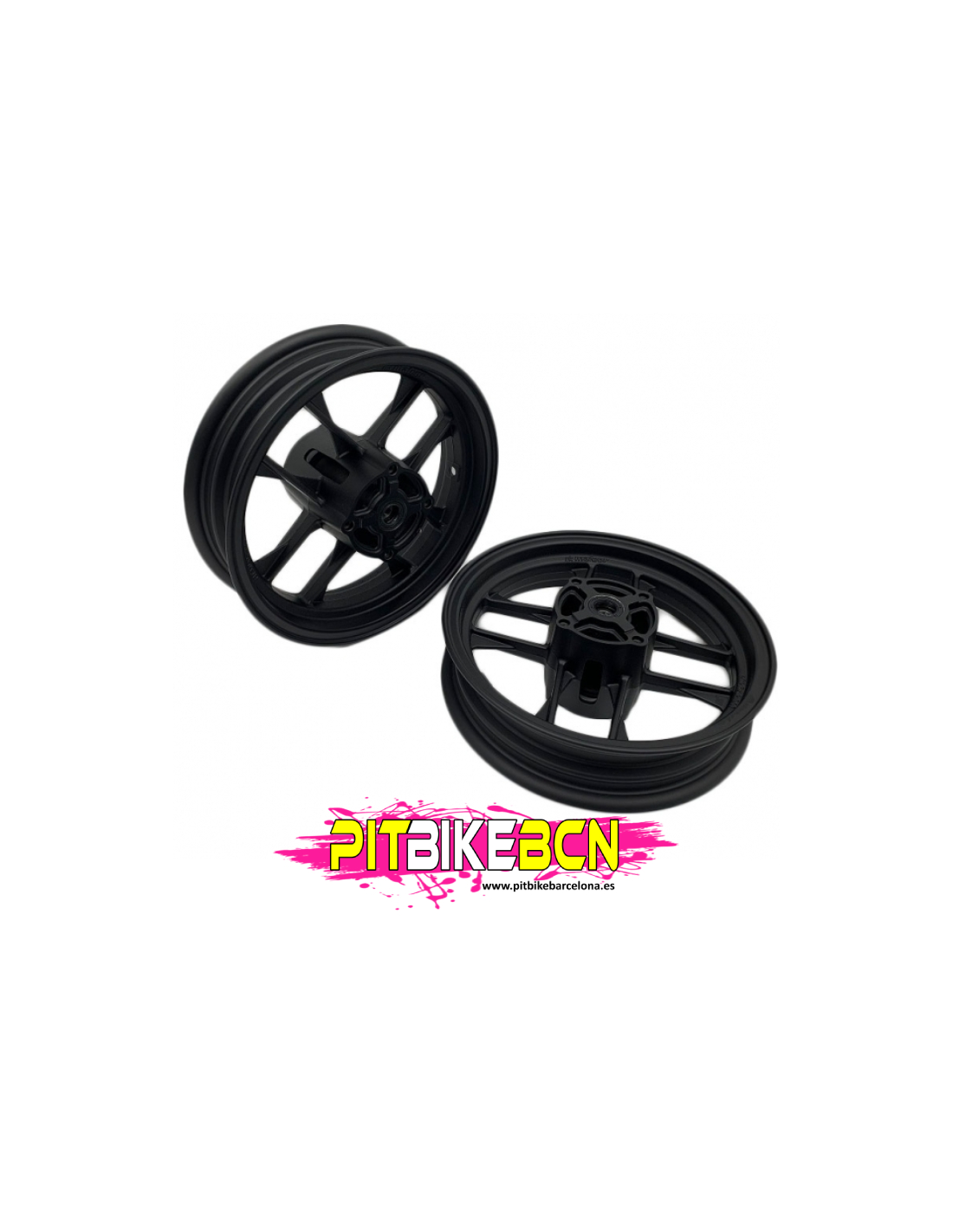 Llantas ligeras MALCOR 12" de 4 taladros color negro. Las mas ligeras del mercado dentro de las 4 taladros, ahora con buje aligerado, con tan solo 5,2kg la pareja!! Consigue hasta 3kg menos en tu moto con estas llantas. Medidas 2.50" y 3.00".