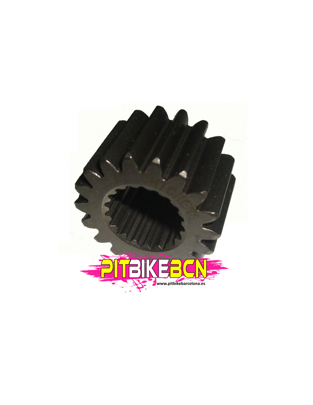 Piñón de engranaje de embrague que se sitúa en el primario, uniendo el piñón solidario del embrague con el movimiento del cigüeñal y las cajas de cambio. Es esencial para la correcta transmisión de potencia en tu Pit Bike.