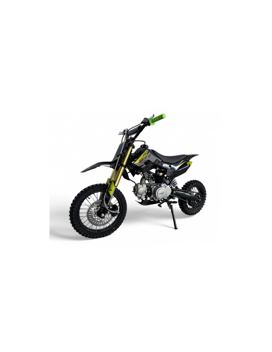 Con frenos de gran tamaño de 230mm, esta pit bike garantiza seguridad y control. Una moto económica, bonita y confiable, lista para disfrutar y saltar sin preocupaciones mecánicas.