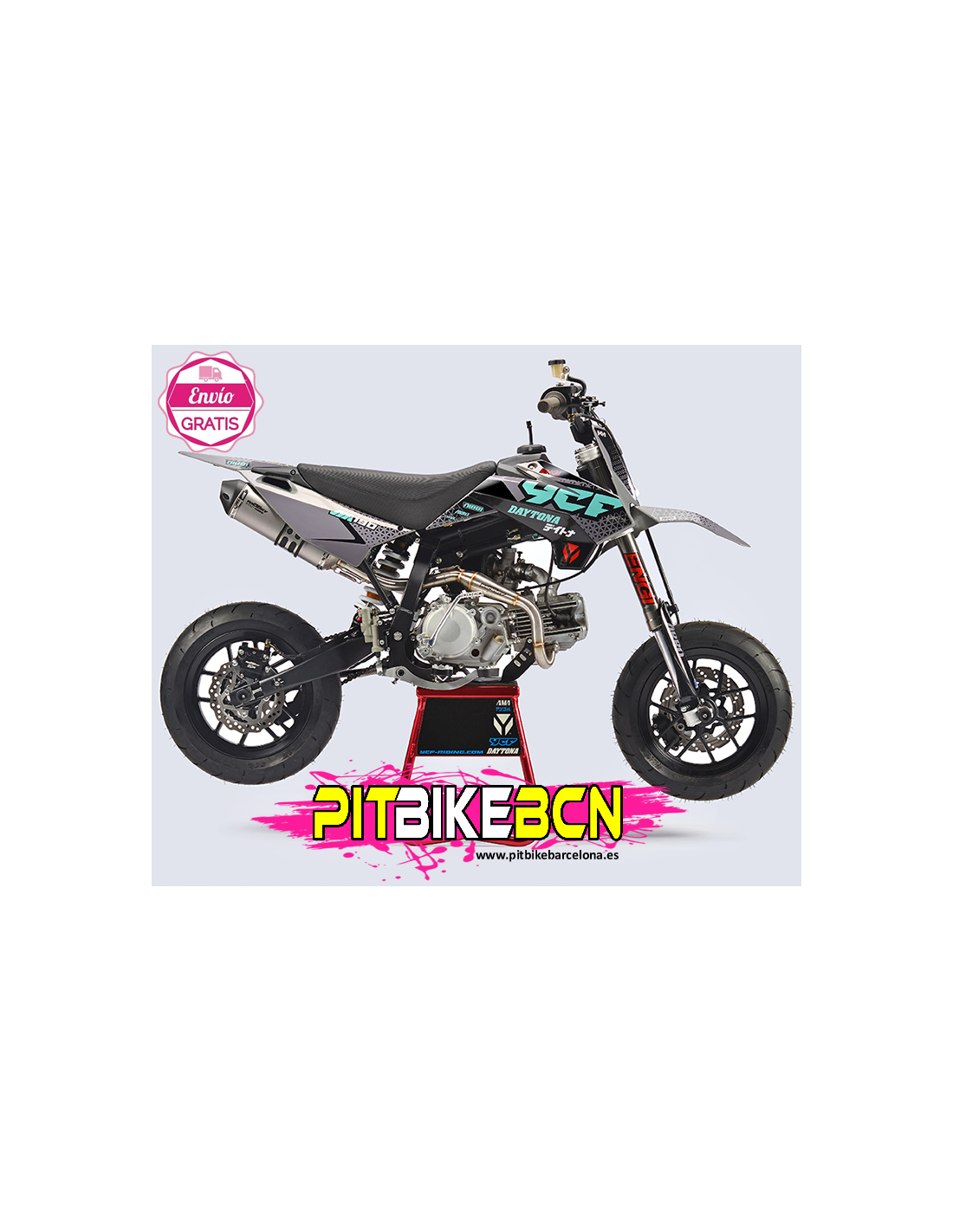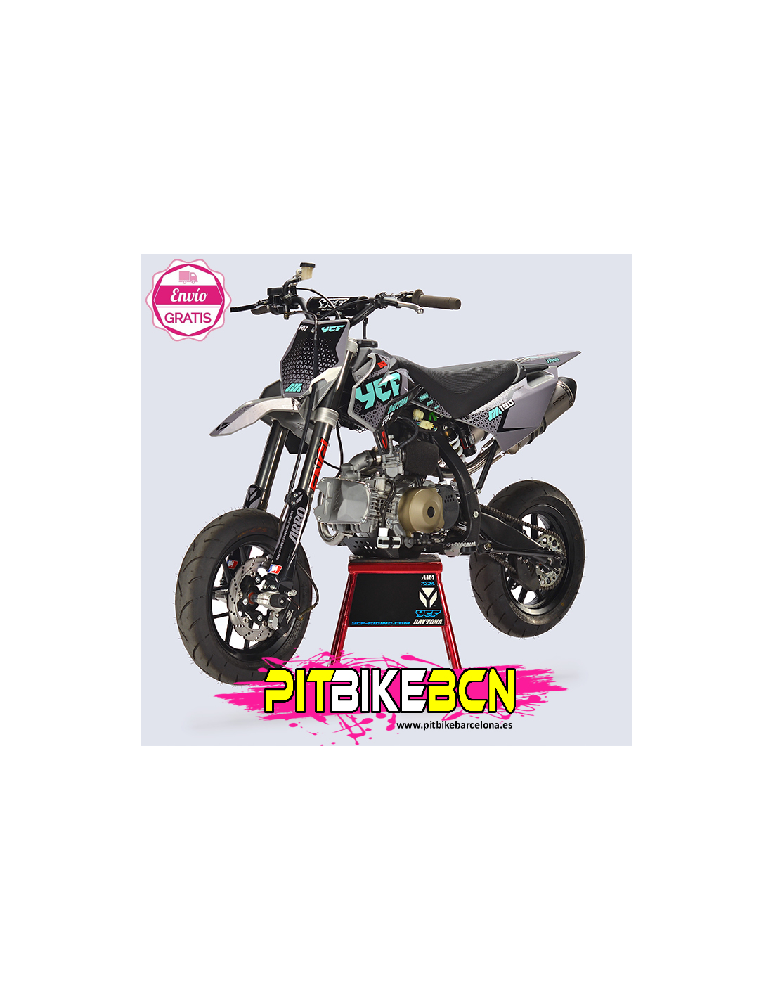 Pitbike YCF SM F190 2024 en color Gris, Turquesa y Negro.