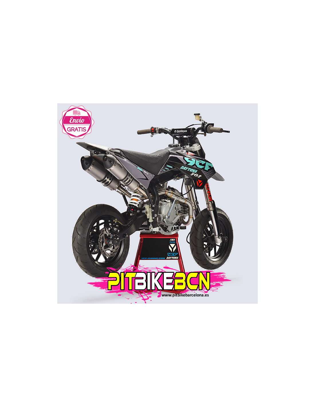 Equipada con motor Daytona 190cc 4T (SYS carrera corta) y caja manual de 4 marchas. Comportamiento deportivo con escape doble salida Racing, llantas YCF y neumáticos Kenda K702.