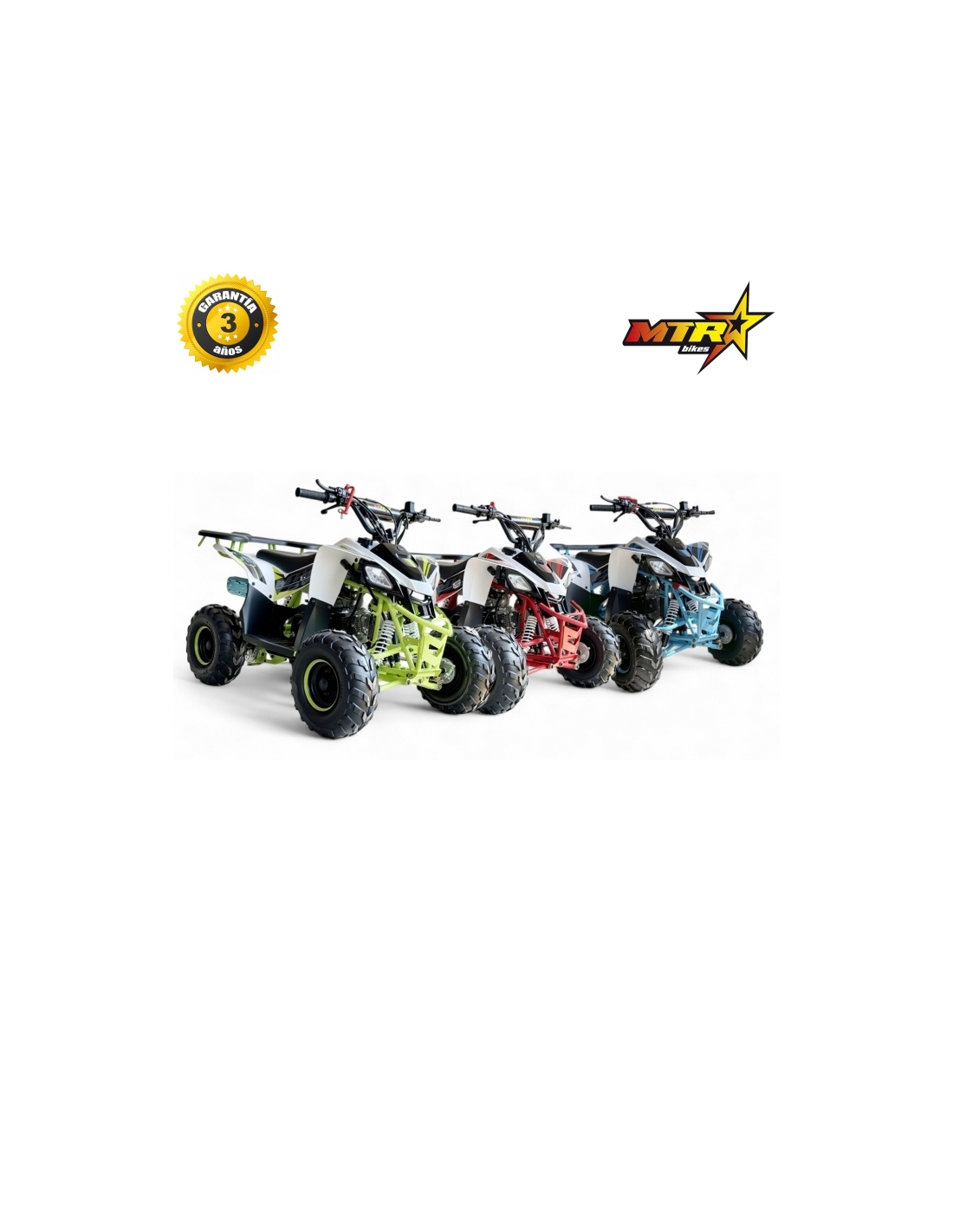 El Quad para los mas pequeños, ideal de 5 a 12 años, de ruedas de 6 pulgadas. Con marcha atrás. Arranque a batería. Poco consumo, muy seguro con regulación de gas.