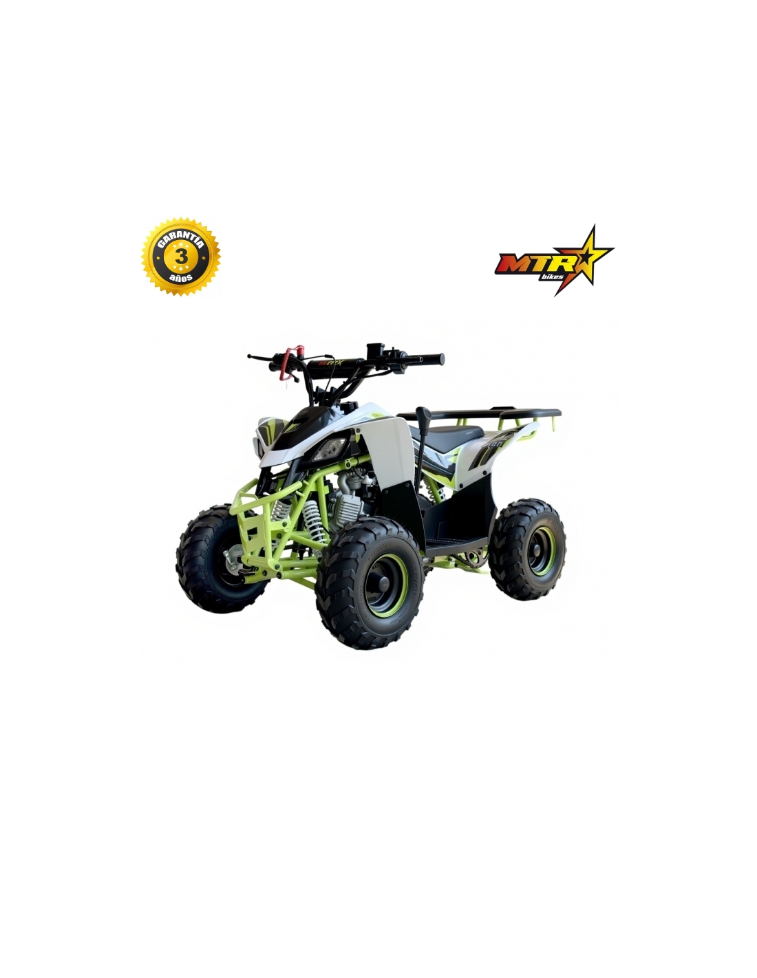 Quad infantil ideal para niños de 5 a 12 años, con ruedas de 6" y marcha atrás. Arranque eléctrico a batería, bajo consumo y regulación de gas para mayor seguridad.