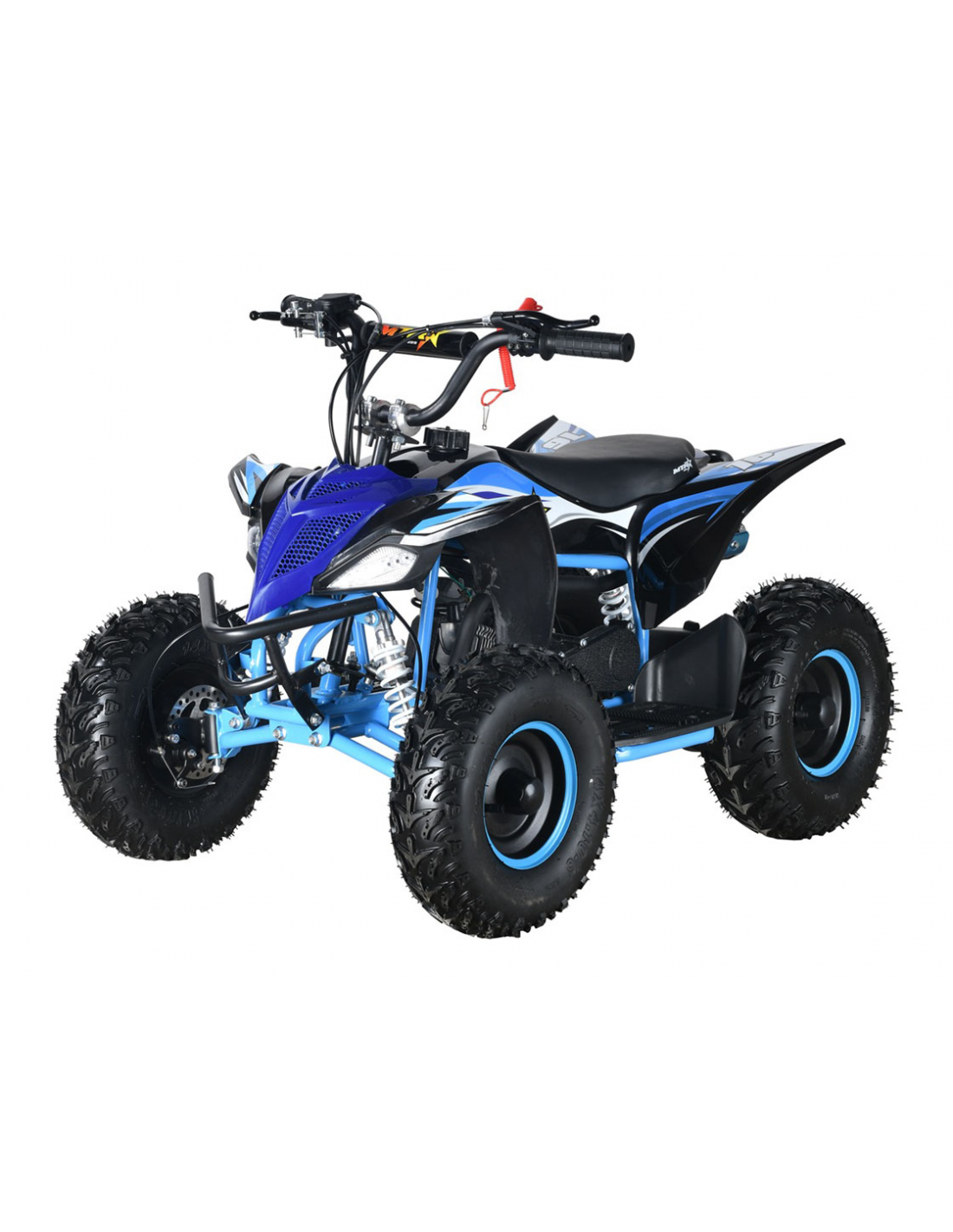 Miniquad MTR KF 49cc, réplica del mítico modelo KF, ideal para niños. Destaca por su arranque reforzado metálico y carburador mejorado anti goteo, garantizando durabilidad y seguridad.