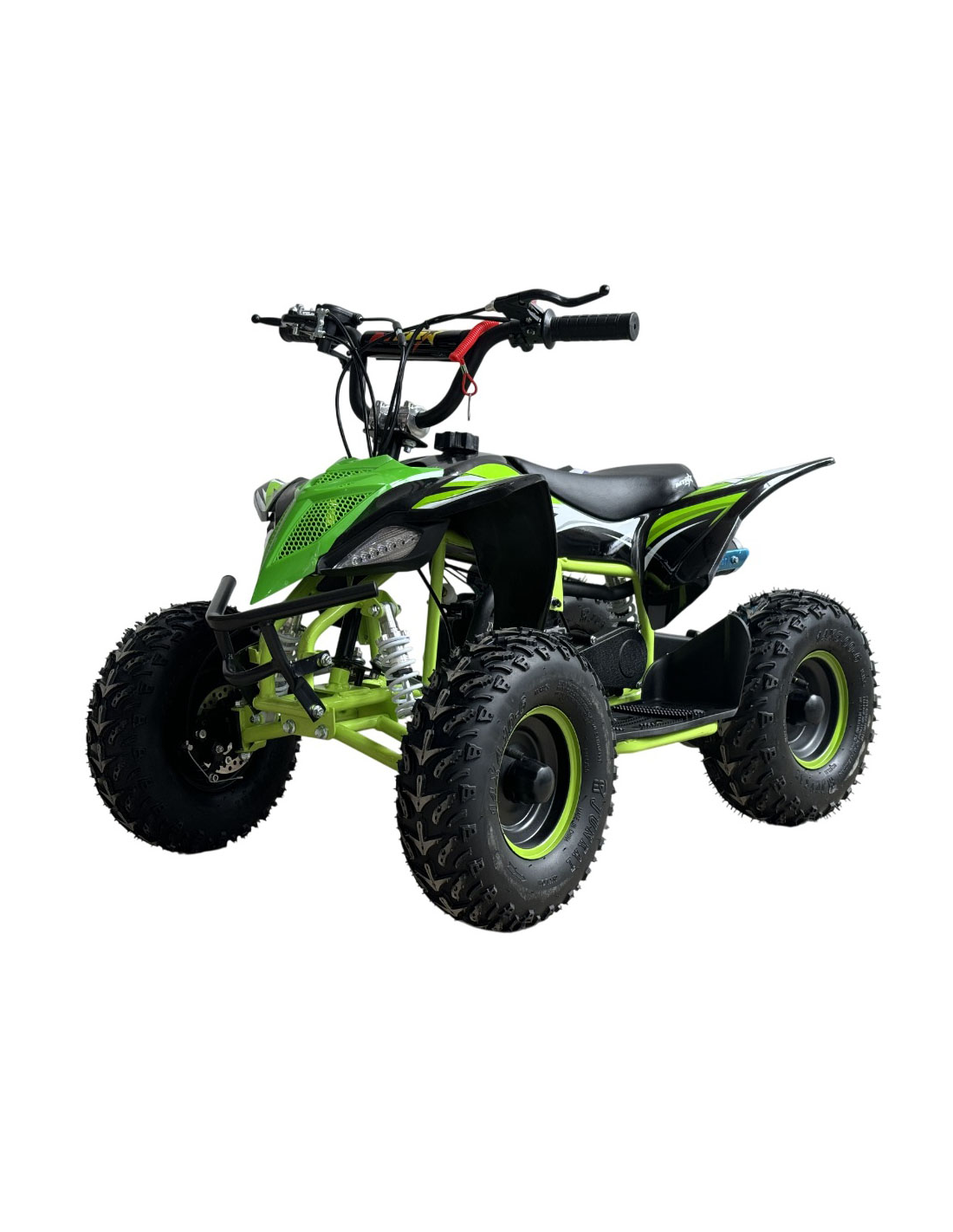 Miniquad MTR KF 49cc, réplica del mítico modelo KF, ideal para niños. Destaca por su arranque reforzado metálico y carburador mejorado anti goteo, garantizando durabilidad y seguridad.