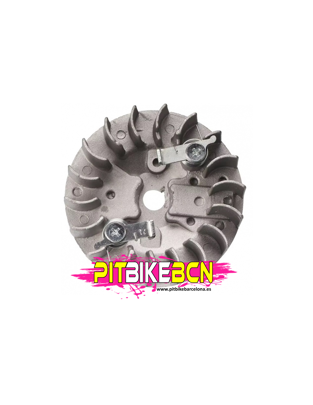 Arrancador con plato magnético y aspas integradas, diseñado para mejorar la refrigeración del motor y asegurar un arranque fiable.
