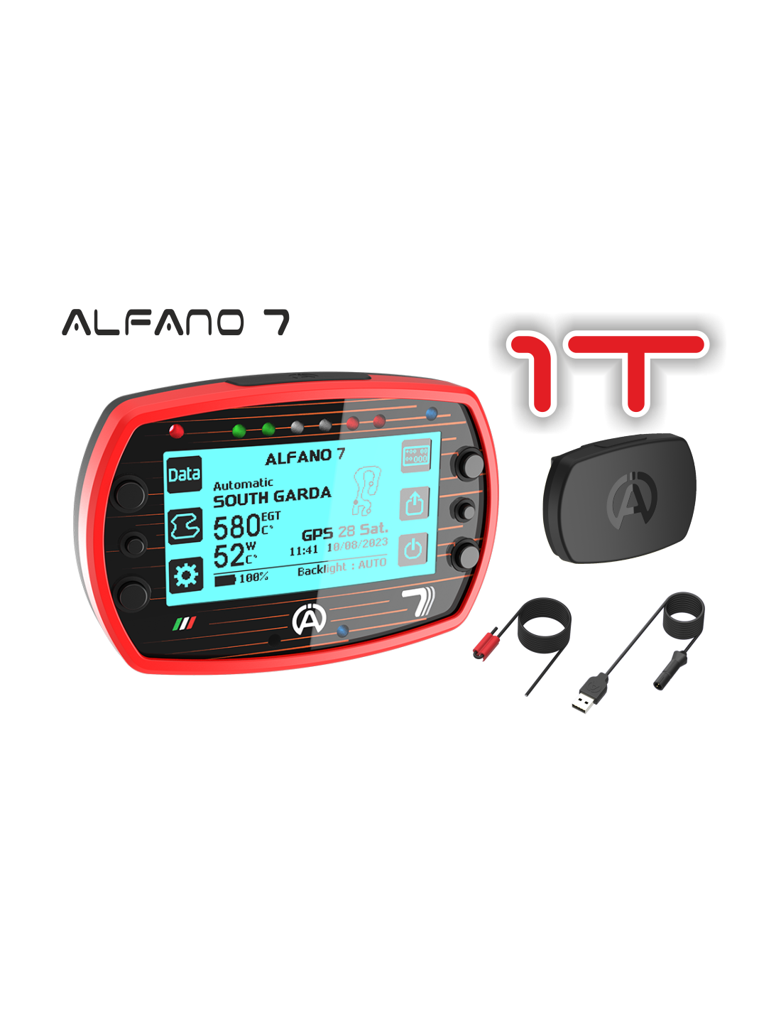 El ALFANO 7 incorpora ahora un GPS de 25 Hz, 2,5 veces más rápido que su predecesor, el ALFANO 6, para mejorar la precisión del tiempo y la trayectoria. También está equipado con comunicación inalámbrica, lo que abre un abanico INNOMBRABLE de posibilidades. Sin necesidad de cables ni cajas intermedias, los sensores se comunican directamente con el ALFANO 7, lo que facilita enormemente la instalación. Y gracias a esta tecnología inalámbrica, hemos podido desarrollar sensores que miden la presión y la temperatura en el interior de los neumáticos. También hemos desarrollado sensores infrarrojos inalámbricos para medir la temperatura en la superficie de los neumáticos. Y lo que es más, gracias a nuestro Dongle USB-Wireless conectado a un PC, que estará disponible muy pronto, el ALFANO 7 es capaz de transferir estos datos más lejos y más rápido, +/- 5 veces más rápido que la comunicación Bluetooth.