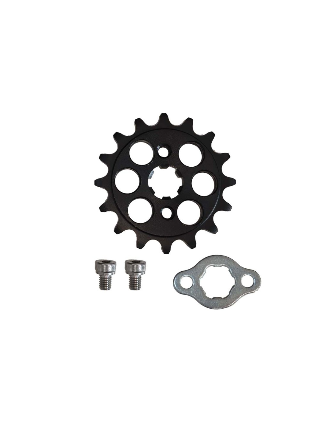 Piñón de ataque para PITBIKE, paso 415 y eje de 17 mm. Disponible en opciones de 12 a 18 dientes, ideal para ajustar la relación de transmisión según tus necesidades y mejorar el rendimiento de tu pit bike.